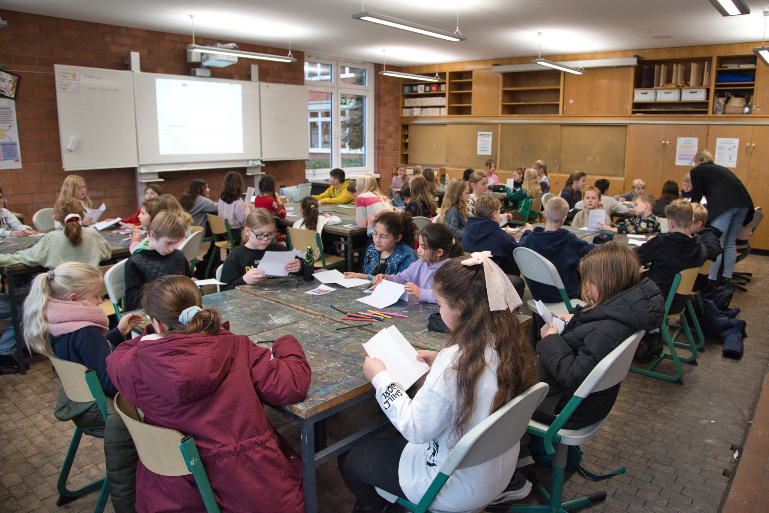 Im Anschluss bot die Schule ein breites Spektrum an Mitmach-Stationen, die Einblicke in zentrale Bereiche des schulischen Arbeitens ermöglichten: von der Berufsorientierung über den innovativen Maker Space und die Schulküche bis hin zu Sportangeboten und dem technisch gut ausgestatteten Roboterzentrum. Kreative Ergebnisse aus dem Schulalltag waren in Ausstellungen zu bestaunen, und beim Mitmachunterricht in den Fächern GL, Deutsch, Religion, Mathematik, Musik, Kunst, Latein und Englisch konnten die Viertklässlerinnen und Viertklässler selbst aktiv werden.