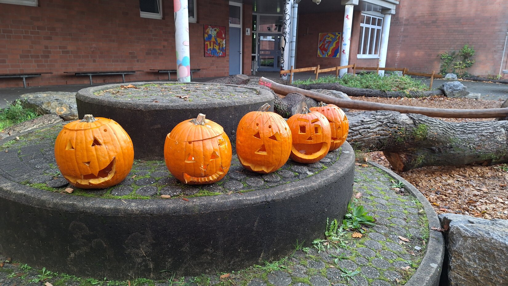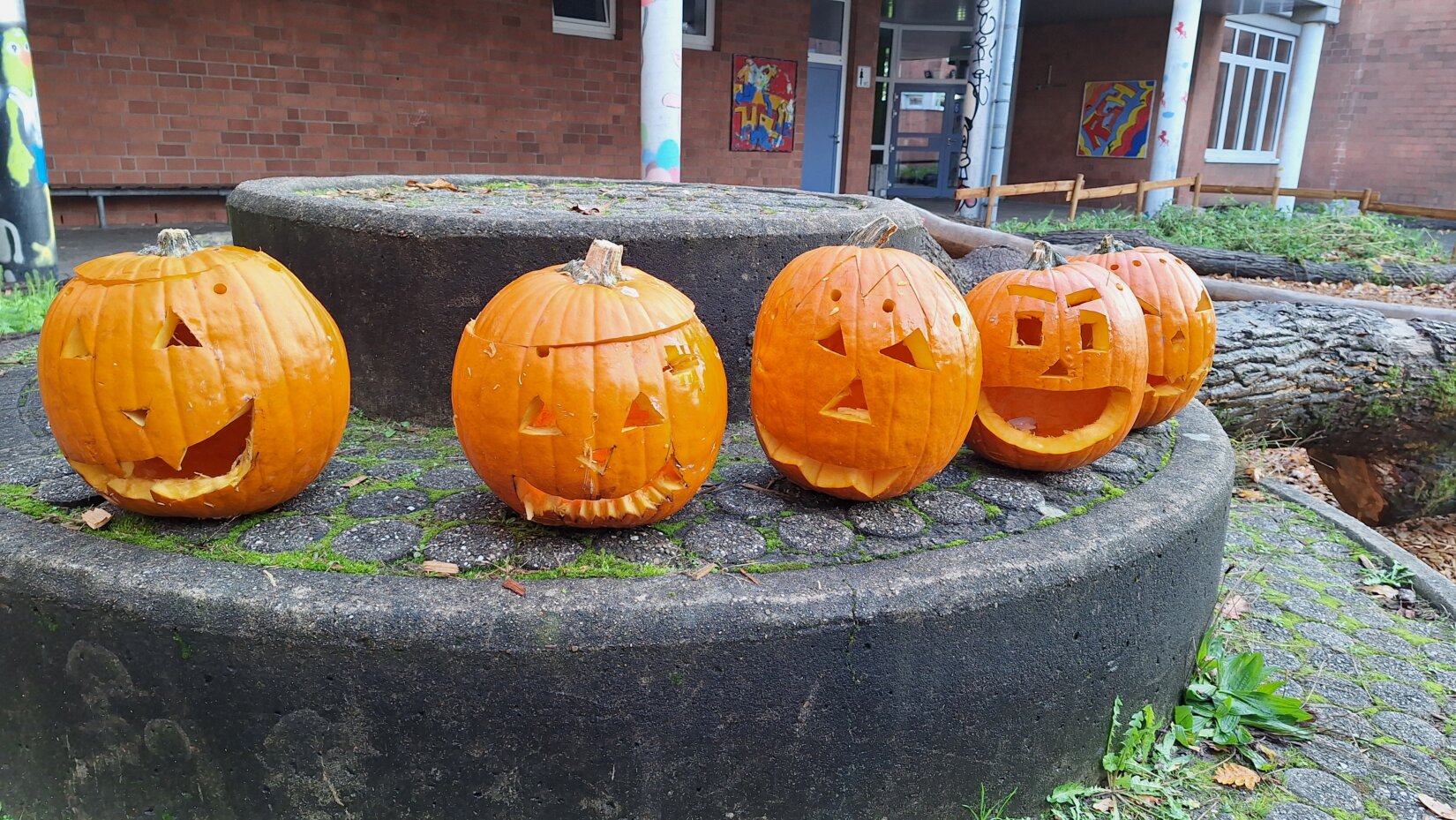 Geschrieben von Redaktion Gesamtschule am 31.10.2025Halloween kann kommen! Die Kürbis-Geister leuchten schon!