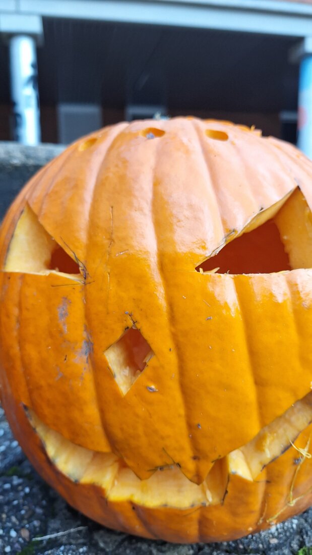 Endlich nach experimentierfreudigen Haarspray- und Mini-Feuerattacken formierten sich die kerzenfeuer-leuchtenden Halloween-Geister-Kürbisse lächelnd umeinander, gemeinsam mit ihren Erschafferinnen und Erschaffern. Was für ein magischer Moment! Und – schwupps vorbei – eilte die junge „Draußen-AG“ davon, um den Bus zu erreichen oder nach Hause zu gehen, nicht ohne besorgt zu fragen, was mit ihren Kürbis-Kunstwerken geschehen würde.
